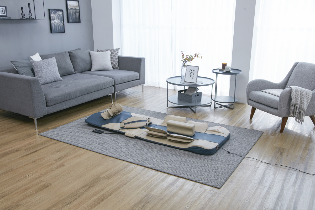 국산 스트레칭 안마매트는 33개의 에어셀로 전신 자동 에어 스트레칭이 가능한 제품으로 목, 어깨, 등, 허리, 골반, 허벅지, 종아리등 전신을 이완시켜 주는 1세대에 에 이어 지난 11월에 강력한 복부마사지 기능을 추가한 시즌2 제품을 출시했고 오는 12월에는 3세대 제품 시즌3의 39개의 최다 에어셀을 갖춘 골반의 특화기능을 갖춘 골반 강화형 스트레칭 안마매트를 출시해 NS홈쇼핑 방송 런칭을 앞두고 있다. 또한 전신 스트레칭 매트의 구조와 동작에 관하여 발명특허(10-1922005호)를 획득해 더욱 기술개발에 박차를 가하고 있다.