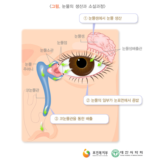 춥고 건조한 찬바람에 눈물이 평소보다 많이 흐른다면, 반드시 안과를 찾아가서 안구건조증으로 인한 자극성 눈물인지, 눈물길 배출로 협착으로 인한 눈물고임인지 원인을 찾아서 치료하는 것이 좋다.
