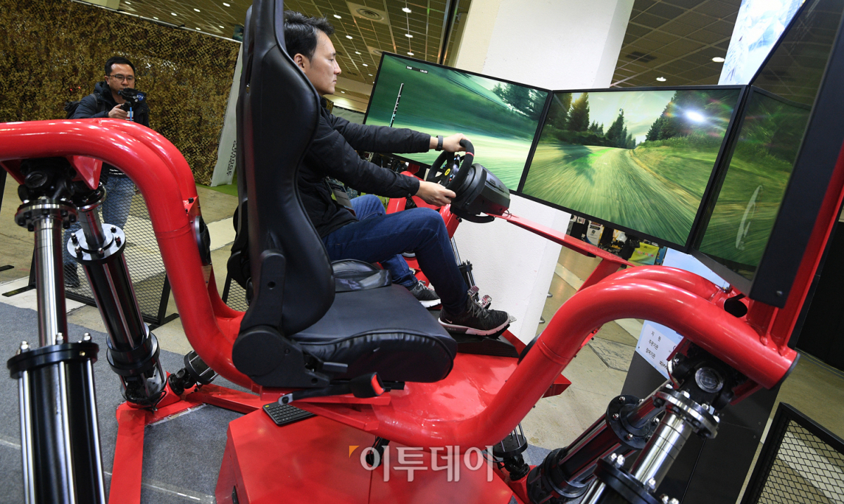 'VR 엑스포 2018'이 개막한 18일 오후 서울 강남구 코엑스에서 관람객들이 가상 현실 장비를 체험하고 있다. 'VR 엑스포 2018'은 가상·증강현실(VR·AR) 테마파크, 게임, 교육, 가상훈련 등 각 분야 200여 기업이 참가했다. 오승현 기자 story@