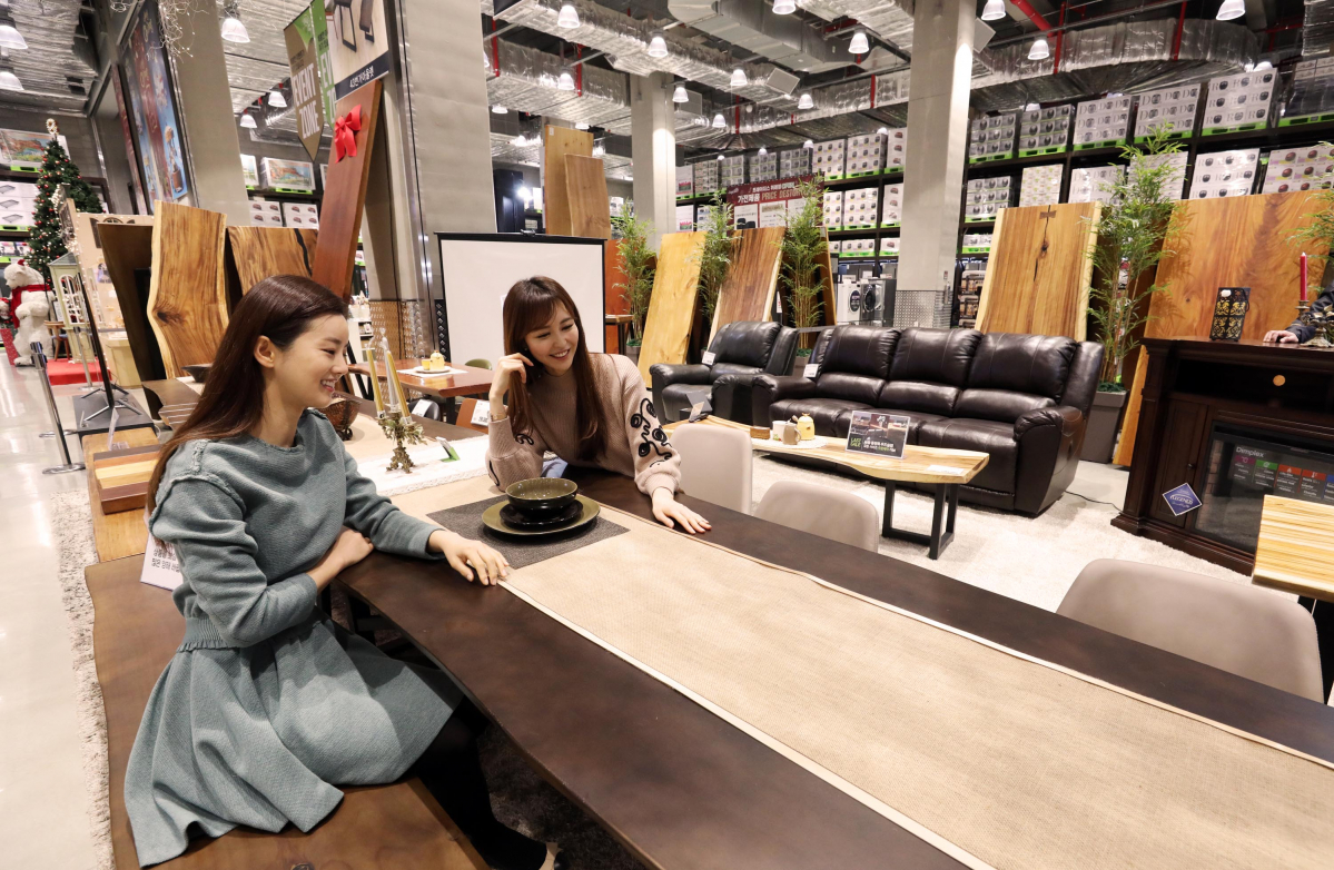 이마트 트레이더스 위례점이 가구 전문업체인 '43번가 아울렛'과 손잡고 다양한 원목으로 만든 통나무 테이블 ‘우드슬랩’ 할인 행사를 실시 중이라고 20일 밝혔다.