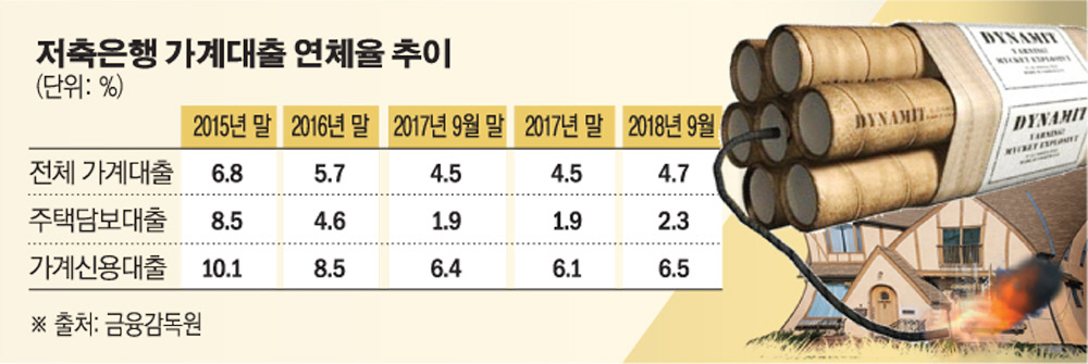 올해 하반기 들어 은행과 저축은행의 가계대출 연체율은 상승세로 돌아섰다. 금감원에 따르면 저축은행 총여신 연체율은 4.6%로 지난해 말과 같았다. 하지만 가계대출 연체율은 4.7%로 지난해 말 대비 0.3%포인트 상승했다. 구체적으로는 가계신용 대출(0.5%p)과 주택담보대출(0.5%p) 모두 올랐다.