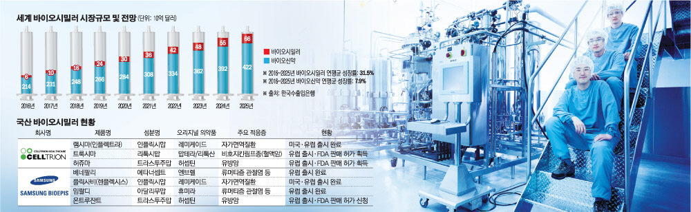 세계 바이오시밀러 시장은 연평균 31.5%씩 성장해 2021년 360억 달러(40조 원), 2025년 663억 달러(75조 원)에 이를 전망이다. 바이오시밀러 시장은 각국 의료부문 예산 삭감과 블록버스터 바이오의약품 특허 만료가 겹치면서 급격히 성장하고 있다.