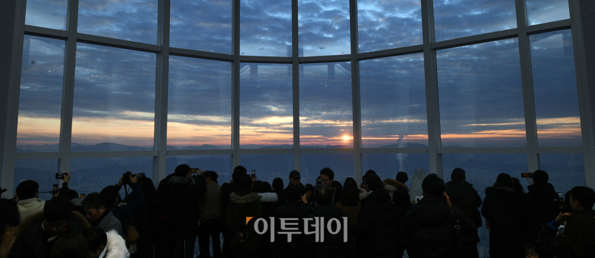 2019년 기해년(己亥年) 희망의 새해가 밝았다. 새해 첫날인 1일 오전 서울 송파구 롯데월드타워 전망대 서울스카이에서 시민들이 구름을 뚫고 새롭게 떠오르는 기해년 첫 태양을 맞이하고 있다. 오승현 기자 story@