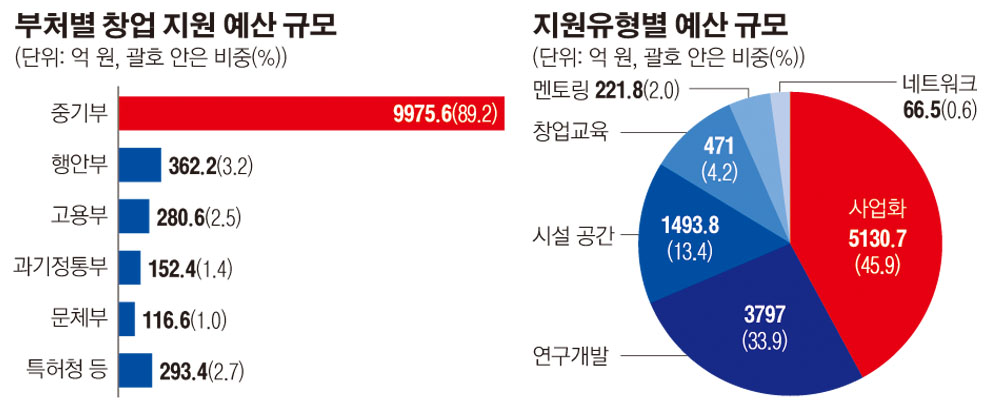 중소벤처기업부는 올해 정부의 창업지원 사업 규모가 14개 부처에서 총 1조1180억원 규모로 집계됐다고 2일 밝혔다. 이는 작년(7796억원)보다 43.4% 증가한 것이다.