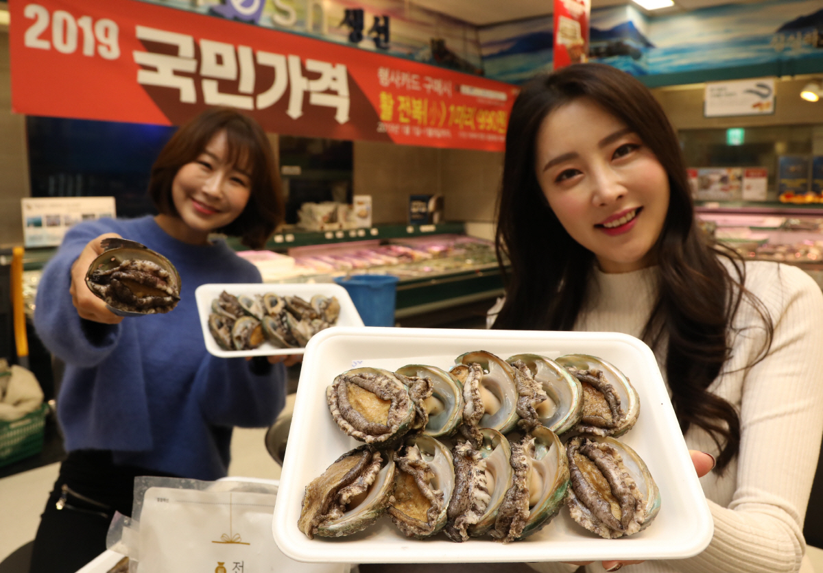 이마트가 2019년 초저가 프로젝트인 ‘국민가격’ 첫 상품으로 990원 전복을 선보인다고 3일 밝혔다. 이마트는 9일까지 행사 카드로 구매 시 전복(소)을 개당 990원에 판매한다. 또한 전복(중/대)을 팩 상품으로 제작해 740g/750g 1팩 당 각 2만3800원에 판매한다.