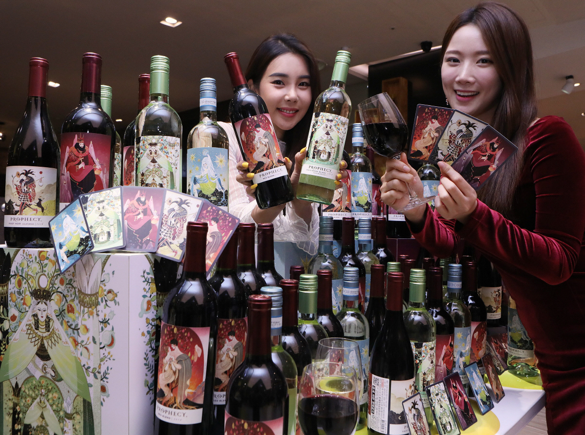 롯데백화점은 타로 카드가 새겨진 ‘프로페시(Prophecy, 예언)’ 와인 5종을 선보인다고 3일 밝혔다. 새로 출시한 와인들은 미국 캘리포니아주, 뉴질랜드, 이탈리아에서 생산된 ‘까베르네 소비뇽’, ‘피노 누아’, ‘소비뇽 블랑’, ‘피노 그리지오’ 품종과 다양한 품종이 혼합된 ‘레드 블렌드’로 만들어졌다. 이 제품에는 와인 레이블을 본뜬 타로 카드 5장이 동봉돼 있다. 롯데백화점은 본점, 잠실점 부산본점 등 주요 점포에서 1월 한달 간 병당 5만 원에 판매한다. 사진제공 롯데쇼핑