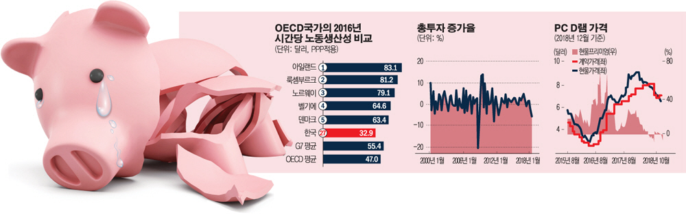 한국생산성본부에 따르면 이미 2016년 기준 한국의 시간당 노동생산성은 32.9달러로 OECD35개국 중 27위로 최하위권이다.