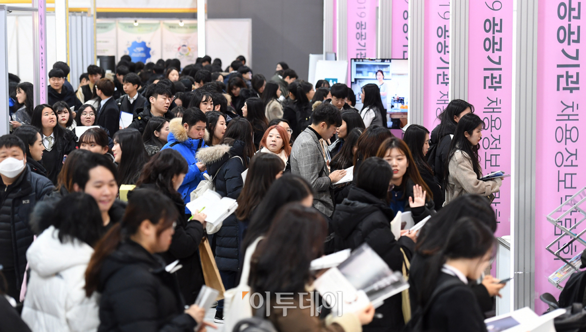 공공기관 채용정보를 한 곳에서 알 수 있는 '2019 공공기관 채용정보 박람회'가 열린 9일 서울 서초구 양재동 aT센터 구직자들이 자신에 맞는 일자리를 찾고 있다. 기획재정부 주관으로 열린 이번 행사는 139개 공공기관이 참여했다. 오승현 기자 story@