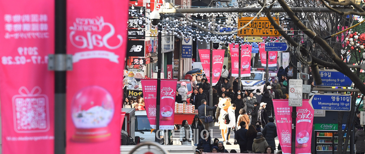 '2019 코리아그랜드세일'이 개막한 17일 오후 서울 중구 명동 거리가 외국인과 시민들로 붐비고 있다. 관광 비수기인 겨울철에 외국 관광객 유치를 위해 마련된 '2019 코리아그랜드세일'은 '여행하고(Travel), 맛보고(Taste), 만져보고(Touch)'를 주제로 다음 달 28일까지 다양한 프로그램을 선보인다. 오승현 기자 story@