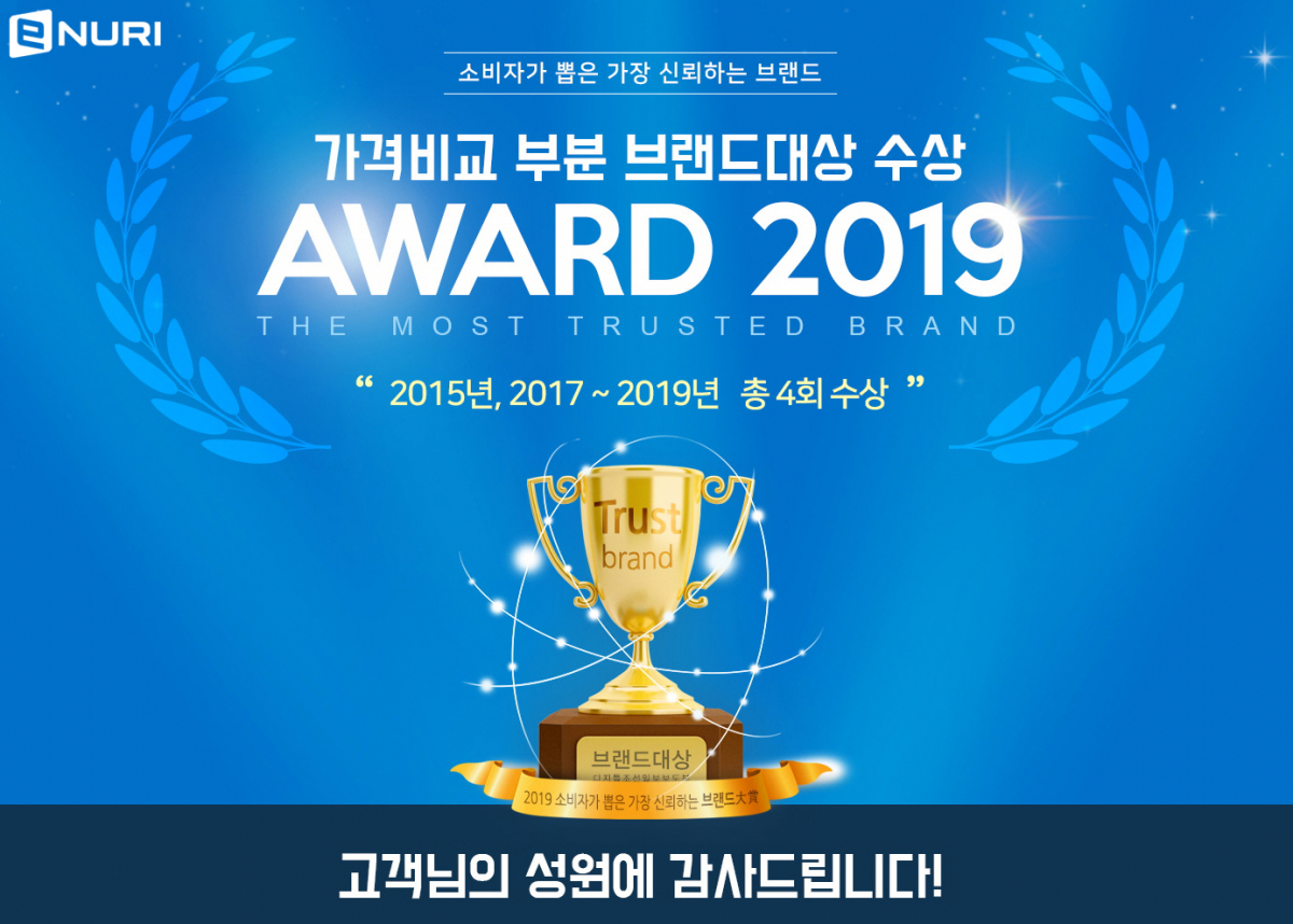 에누리 가격비교가 ‘2019 소비자가 뽑은 가장 신뢰하는 브랜드 대상’에서 가격비교 부문 대상 수상을 기념해 고객 감사 이벤트를 진행한다고 21일 밝혔다.
