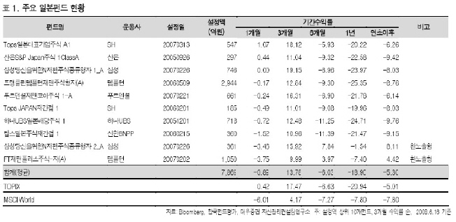 또한 그는 "일본펀드의 상승 추세가 지속되기 위해서는 일본경제의 회복이 가시화되는 것이 무엇보다도 중요하며, 이를 위해서는 엔화의 약세 기조 유지, 투자와 소비 등의 내수 회복이 필요하다"고 강조했다.