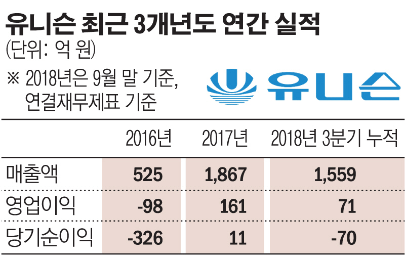 유니슨이 영광풍력발전 가동 개시에도 운영권이 달린 지분을 매각한 데는 유동성 부족 때문인 것으로 보인다. 작년 3분기 말 연결재무제표 기준 회사의 누적(1~3분기) 영업이익은 71억 원으로 2017년(161억 원)의 절반 이하로 떨어졌다. 2016년에는 98억 원의 영업적자를 내기도 했다. 연간 영업실적이 불안정한 가운데 신사업 투자를 지속하는 데 따른 부담이 누적된 것으로 관측된다.