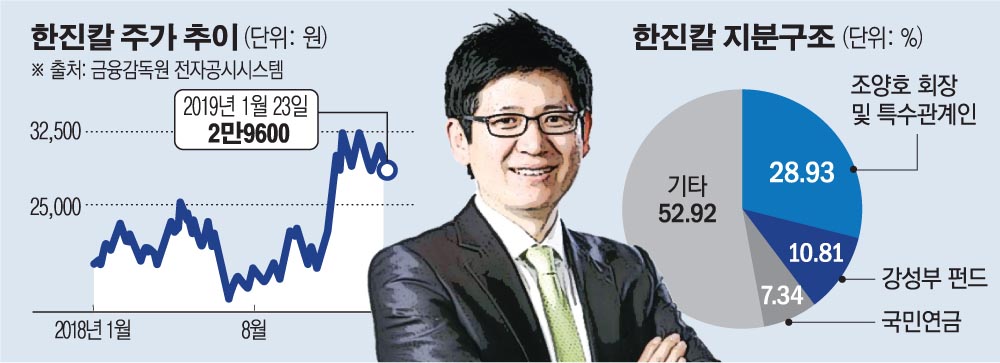 향후 한진그룹과 KCGI펀드 간 표 대결이 벌어질 경우 주가가 매우 중요해진다. 만약 주가가 하락하면 ’강성부 펀드‘ 뒤에 있는 투자자들의 내부 결속력이 약해지기 때문이다. 나아가 ‘강성부 2호 펀드’가 만들어질 가능성도 낮아진다. 반면 주가가 오른다면 강성부 펀드에 동조하는 기관투자자가 전면에 나타날 가능성도 배제할 수 없다.