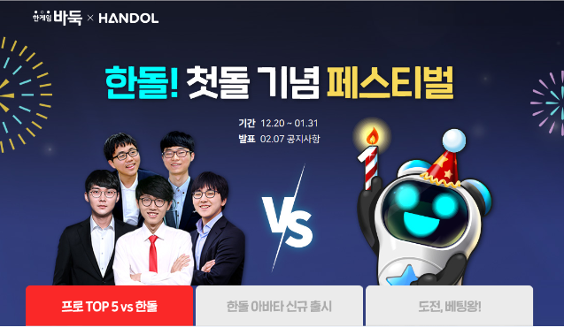 한돌은 출시 1주년 기념 릴레이 대국에서 신민준 9단·이동훈 9단·김지석 9단·박정환 9단을 순서대로 모두 이겼다.