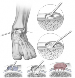 손상된 연골은 초기 미세천공술을 통해 증상 호전을 기대할 수 있다. 하지만 손상 크기 및 연령 등 적응증이 넓지 않다. 때문에 많은 환자들은 더 이상의 손상을 막기 위해 고정술 등을 통해 발목을 고정하는 치료를 받았다. 때문에 술 후 발목 기능에 제한과 고정된 나사 손상에 따른 합병증 위험이 적지 않았다.