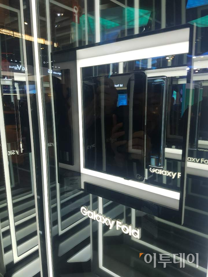사진은 행사장에 전시된 '갤럭시폴드'의 모습. 갤럭시 폴드는 유리 케이스 안에 전시돼 실제로 만져보고나 체험할 수는 없다.