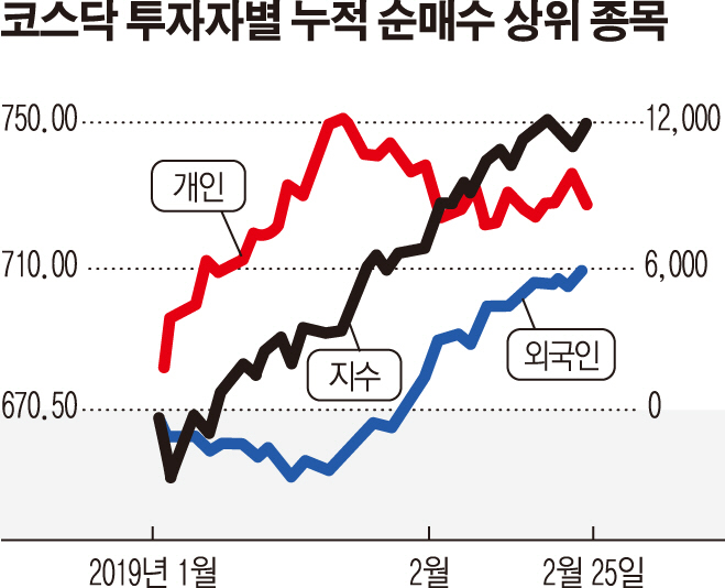 올해 들어 개인투자자는 코스피시장에서 3조8000억 원의 대규모 매도 러시를 이어가고 있는 반면 코스닥시장에서 8000억 원 순매수 행진을 지속하고 있다. 같은 기간 외국인투자자도 5975억 원을 사들이며 지수 상승을 견인했다. 코스닥 시가총액 상위 10개 IT기업의 평균 주가상승률은 12.9%에 달한다.