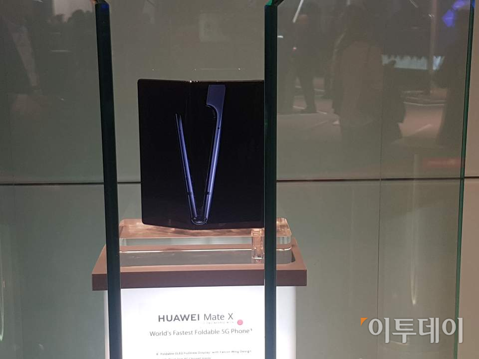메이트X는 건너편 삼성전자 폴더블폰인 '갤럭시폴드'를 마주보고 전시됐다. 전날 화웨이는 메이트X를 공개하면서 갤럭시폴드를 언급하면서 기술우위가 있다고 도발한 바 있다.