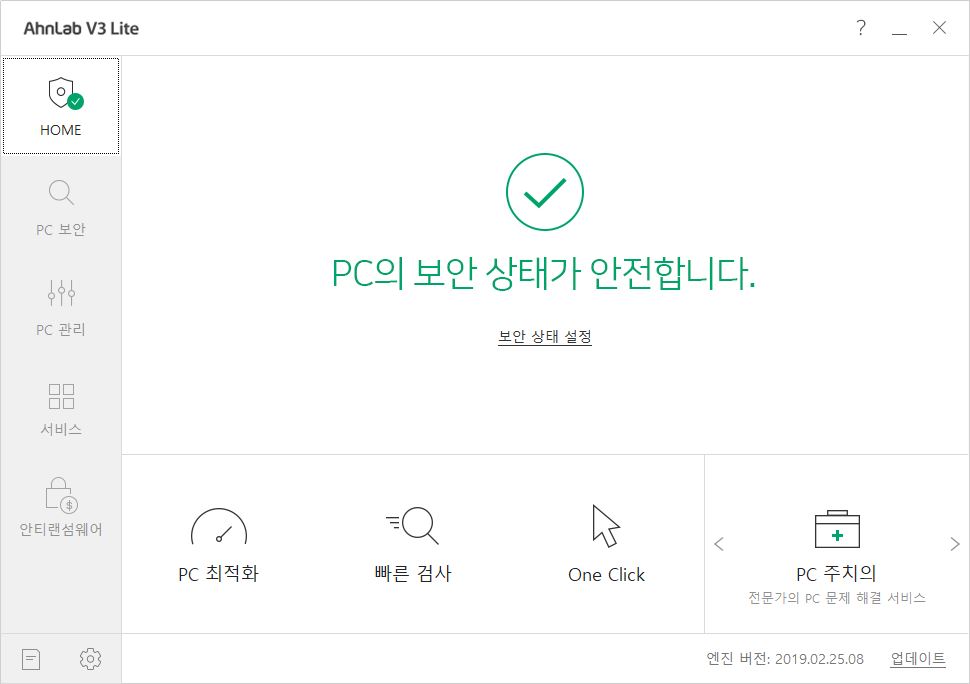 안랩은 그간 사용자의 이용 데이터를 분석해 많이 사용하는 기능을 메인 화면에 배치하고 PC상태를 한눈에 파악할 수 있도록 메인 화면을 개편했다.