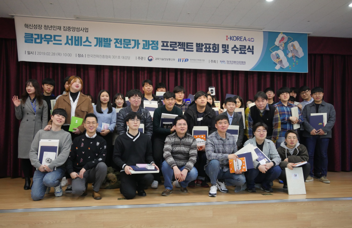 과학기술정보통신부 소속 한국전파진흥협회(RAPA)는 과학기술정보통신부 주최하고 정보통신기술기획평가원(IITP)가 주관하는 혁신성장 청년인재 집중육성사업 ’클라우드 서비스 개발 전문가‘ 과정(서울ㆍ아산)을 2018년 9월 17일부터 올해 2월 28일까지 주5일, 830시간 교육과정 44명에 대한 수료식을 실시했다고 3일 밝혔다.