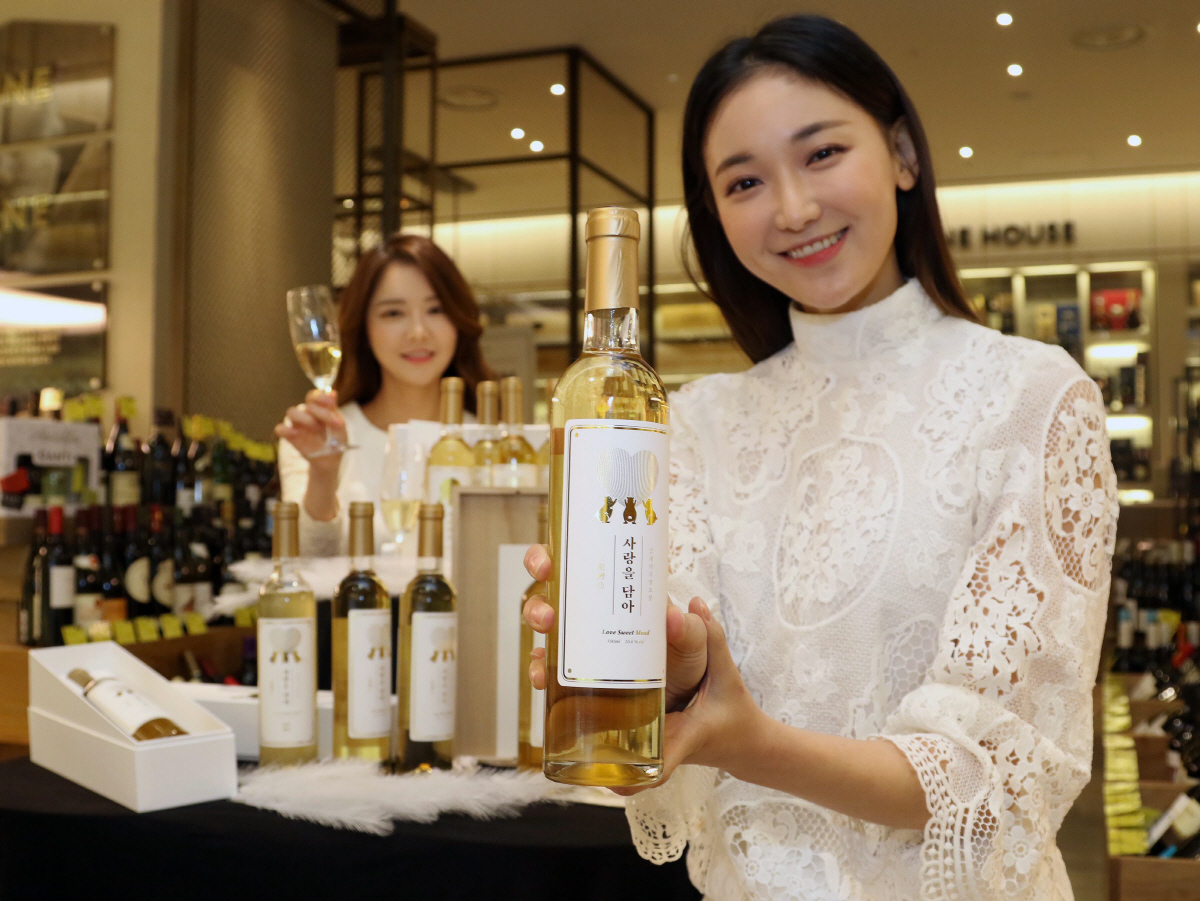 화이트데이를 앞두고 신세계백화점은 14일까지 본점 와인하우스에서 국산 식재료로 빚은 꿀술 ‘사랑을 담아(500ml)’를 단독으로 선보인다고 5일 밝혔다. 서울의 들꽃꿀과 물, 그리고 효모만을 이용해 빚은 이 상품은 화학 첨가물이 없어 자극적이지 않은 단맛이 특징이다. 또 과일, 블루치즈, 파마산 치즈 등과 함께 먹을 때 느낄 수 있는 특유의 꽃 향기가 일품이다. 사진제공 신세계백화점