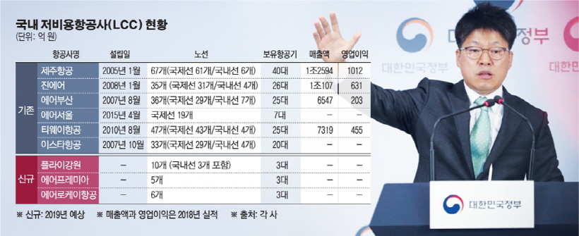 이로써 국내 LCC는 기존 6개에서 무려 9개로 늘어났다. 당초 1~2개 항공사가 추가될 것이라는 예상을 완전히 뒤엎은 결과다. 유럽 LCC들의 파산이 잇따르고 있는 상황에서 우리 정부가 지나치게 정치적 상황을 고려한 것 아니냐는 비판의 목소리가 나오는 이유다.