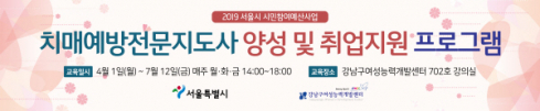 이 가운데 강남구여성능력개발센터(관장 서숙경)는 4월 1일(월)부터 7월 12일(금)까지 약 4개월간 ‘치매예방 전문지도사 양성 및 취업지원 프로그램’을 진행한다.