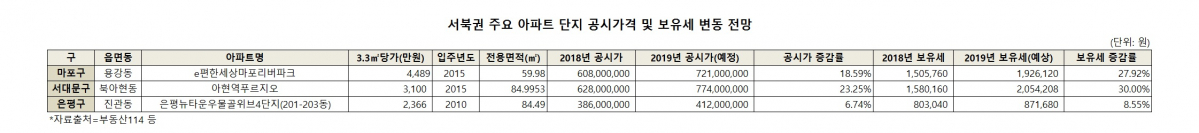 마포구는 지난 해 대비 17.35% 오르고 서대문구는 15.03% 상승하며, 은평구는 9.39%가 상승할 것으로 예상된다.
