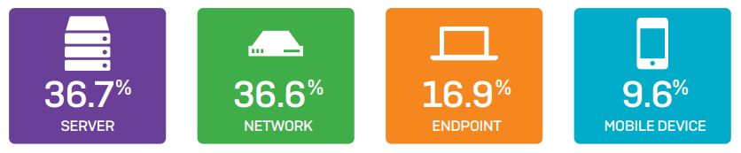 실제로 IT 관리자들은 지난해 가장 심각한 사이버공격을 자사 서버에서 발견했다는 응답이 37%, 네트워크에서 발견했다는 응답자가 37%였고, 엔드포인트와 모바일에서 발견된 경우는 불과 17% 및 10% 정도였다.