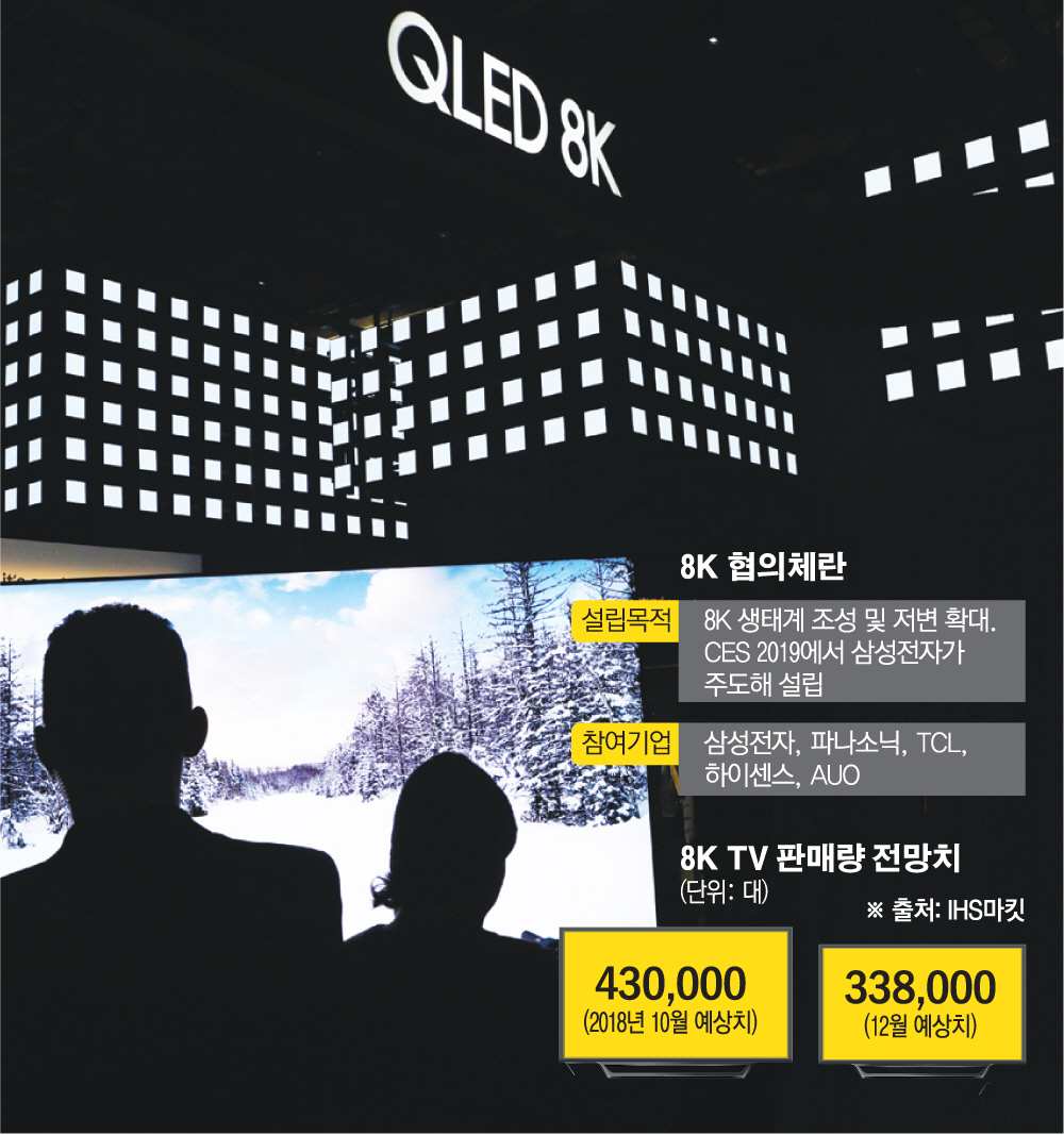 8K 협의체는 올 1월 열린 세계 최대 가전박람회 ‘CES 2019’에서 삼성전자 주도로 결성된 단체다. 8K 생태계 조성 및 저변 확대를 위해 설립된 8K 협의체에는 삼성전자 외에도 파나소닉·TCL·하이센스 등 TV 제조사 3곳과 대만의 패널 제조사 AUO 등이 참여하고 있다.