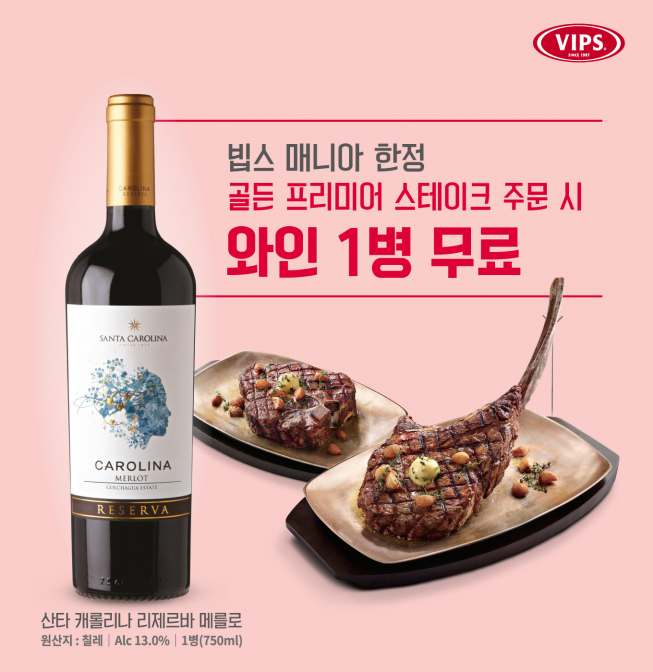 CJ푸드빌이 운영하는 빕스(VIPS)가 빕스의 우수 고객인 ‘빕스 매니아’를 대상으로 ‘골든 프리미어 스테이크’ 주문 시 와인 1병(성인 고객 한정)을 무료 증정하는 이벤트를 진행한다.