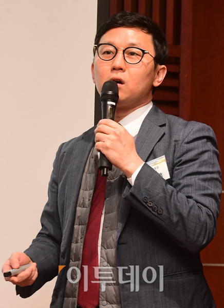 윤주호 메리츠종금증권 스몰캡 팀장이 28일 서울 여의도 한국금융투자협회 불스홀에서 열린 제8회 이투데이 프리미엄 투자세미나에서 '수소차의 미래를 말한다: 2019년 정부정책과 일본 사례 및 발전방향'을 주제로 강연을 하고 있다. 이날 이투데이는 '미래먹거리' 수소경제와 수소차 관련 종목 전망과 숨어있는 저평가 우량주를 전문가와 함께 제시했다. 고이란 기자 photoeran@