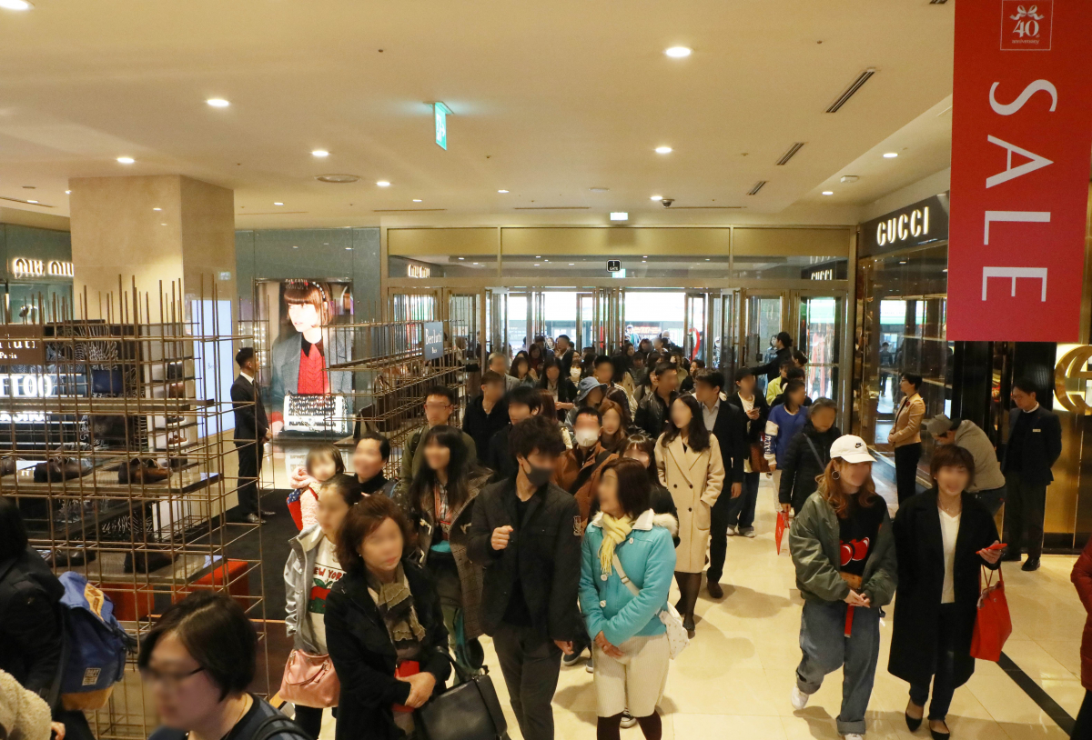 백화점들의 봄 정기세일이 시작된 가운데 29일 오전 롯데백화점 소공동 본점이 개장하자마자 개장 시간에 맞춰 고객들이 입장하고 있다. 롯데를 비롯한 주요 백화점들은 29일부터 4월 14일까지 17일 간 전 점에서 세일을 실시, 온오프라인에서 다양한 할인행사와 이벤트에 나선다. 사진제공 롯데백화점