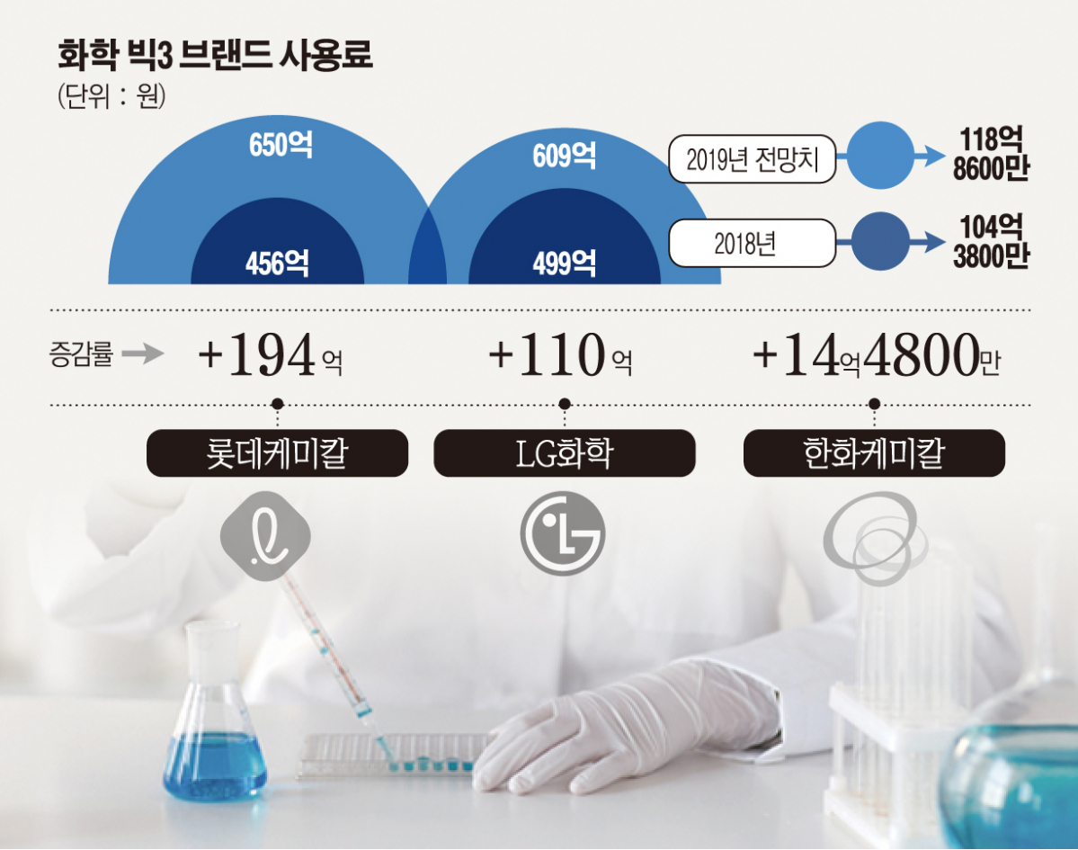롯데케미칼 역시 브랜드 사용료가 껑충 뛰었다.