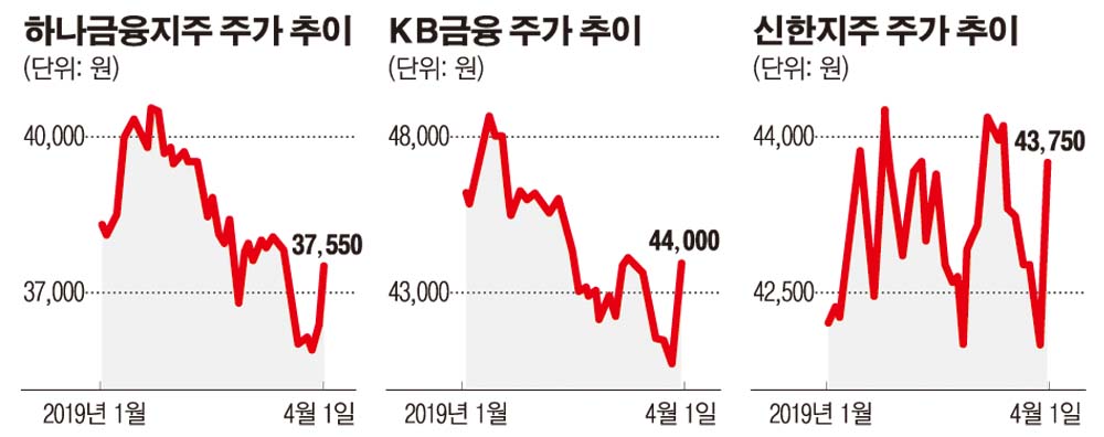 지난해 저조한 성적표를 받은 금융지주사 주가가 최근 반등세를 보이고 있다. 그러나 저금리 기조와 경기부진으로 상승폭이 제한될 수 있다는 분석이 제기되고 있다.