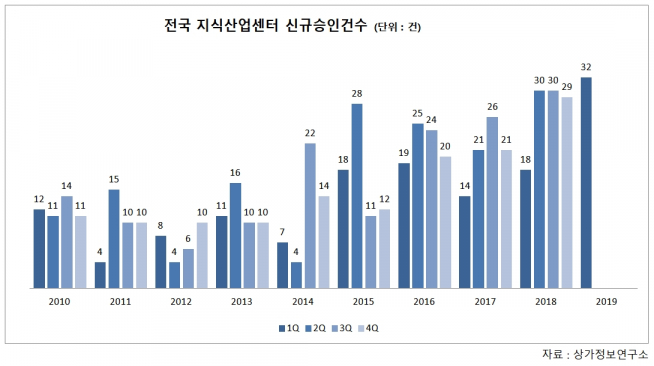 3일 수익형 부동산 전문기업 상가정보연구소에 따르면 3월 말 현재 전국 지자체와 관리기관에서 신설 또는 변경 승인(최초 승인일 기준)을 받은 지식산업센터는 총 1053곳으로 조사됐다.