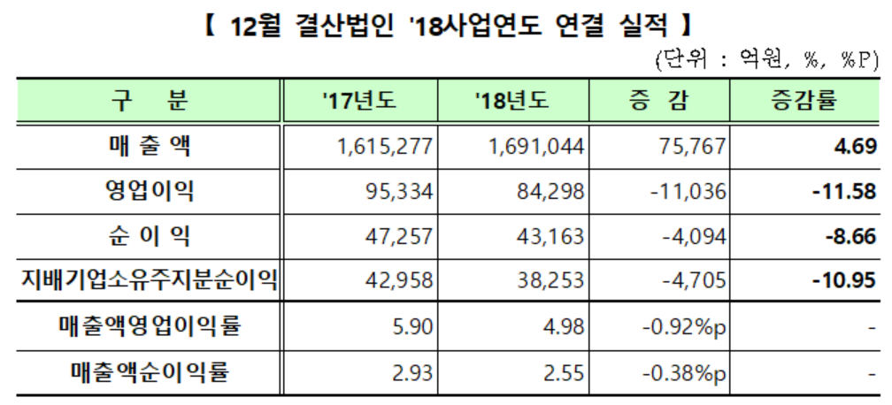 실적 증가율도 다소 둔화됐다. 매출액 영업이익률과 매출액 순이익률은 각각 0.92%포인트, 0.38%포인트 하락했다. 반면 부채비율은 102.43%를 기록해 지난해 대비 4.25%포인트 상승했다.