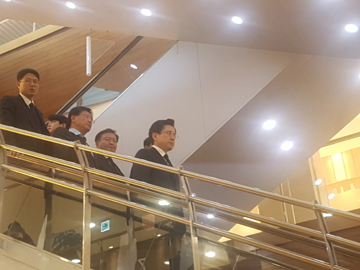 황교안 자유한국당 대표가 12일 오전 서울 서대문구 신촌세브란스 병원 장례식장에 마련된 고 조양호 한진그룹 회장의 빈소로 들어가고 있다.