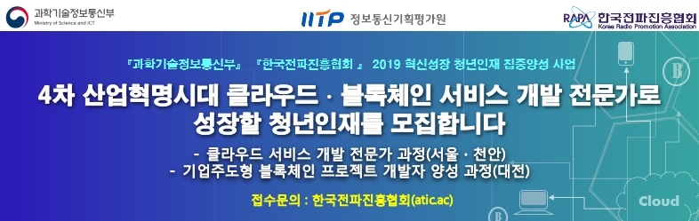 한국전파진흥협회는 과학기술정보통신부 및 정보통신기획평가원(IITP)이 주관하는 4차 산업혁명 선도 기술분야 산업 맞춤형 청년인재 양성사업인 '2019년 혁신성장 청년인재 집중양성 사업' 주관기관으로 선정됐다고 15일 밝혔다.
