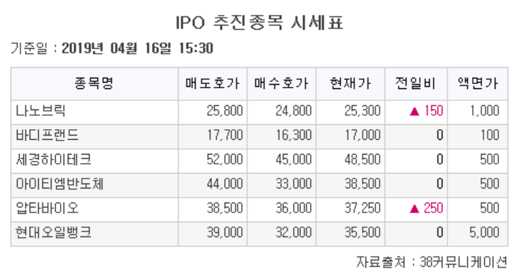 IPO(기업공개)관련주로 심사청구 기업인 기능성 신소재 전문기업 나노브릭이 2만5300원(0.60%)으로 사흘 째 오름세를 나타냈고, 압타머를 이용한 항암치료제 개발업체 압타바이오도 3만7250원(0.68%)으로 어제 하락 분을 만회했다.