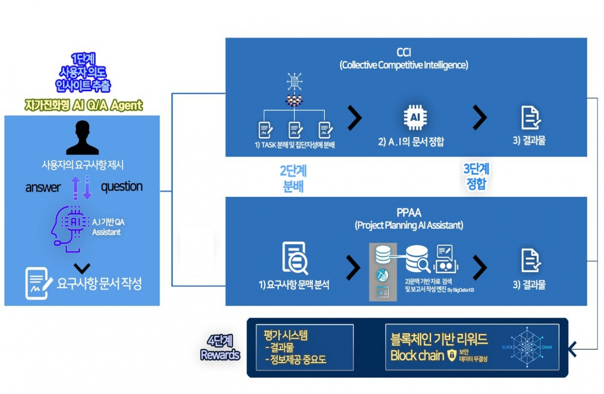 이로써 온라인 속 전문가들의 집단지성과 빅데이터를 활용해 양질의 콘텐츠를 생산하는 AI 플랫폼을 개발하고, 블록체인 기반의 업무 콘텐츠를 공동으로 저작하고 자동화하는 서비스를 제공할 계획이다.