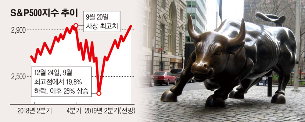 전문가들은 시장이 작년 말 극심한 변동장세에서 빠르게 회복됐다고 입을 모은다. 작년 연말 S&P500지수와 다우지수는 최악의 크리스마스 이브를 맞아야했다. 그러나 이후 S&P500은 약 25% 올랐고, 다우와 나스닥은 각각 22%, 30% 상승했다.