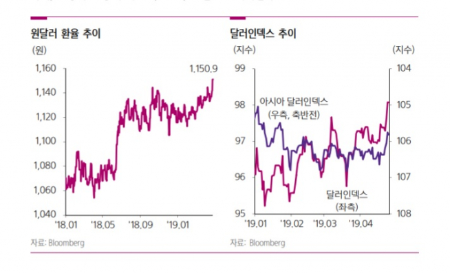 이우중 NH선물 연구원도 "원달러 환율은 역외 달러 강세의 반영과 부진한 한국의 경제성장률 지표를 반영하는 과정 속 상승압력이 우위를 점할 것"이라고 예상했다.