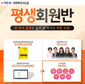 종합교육기업 ㈜에듀윌은 사회복지사 1급 자격증 시험을 준비하는 수험생을 대상으로 ‘평생회원반’을 선보이고 수강생을 모집한다고 밝혔다.