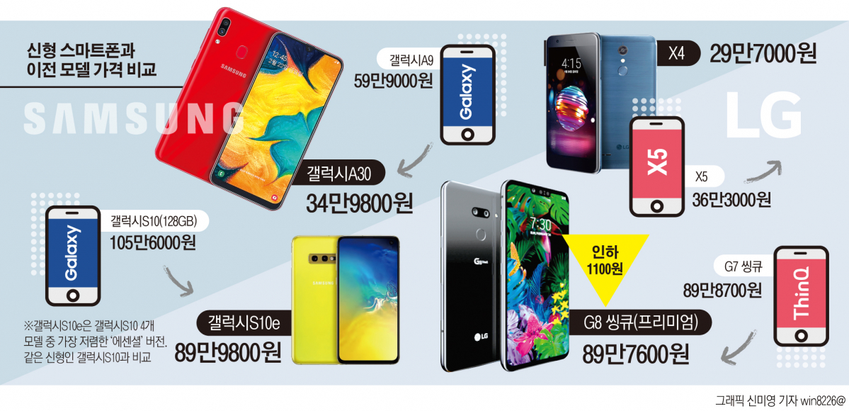 오는 29일부터 사전판매를 시작하는 삼성 ‘갤럭시 A30’은 가격이 34만9800원에 불과하다. 하지만 프리미엄 제품에 사용되는 풀스크린 인피니티-U 디스플레이를 탑재했다. LG전자도 지난 2월 50만 원대의 ‘LG Q9 원’을 LG유플러스 전용으로 출시했다.