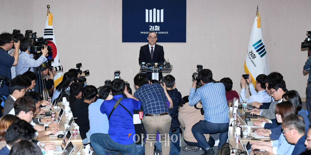 문무일 검찰총장이 16일 서울 서초구 반포대로 대검찰청에서 기자간담회를 갖고 국회 사개특위의 검경수사권 조정안 패스트트랙 지정에 대한 입장을 밝히고 있다. 신태현 기자 holjjak@
