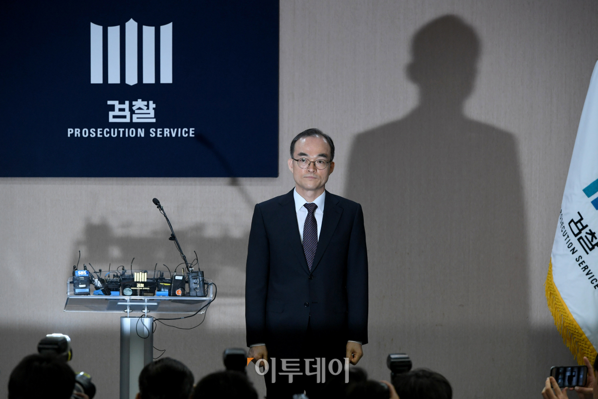 문무일 검찰총장이 16일 서울 서초구 반포대로 대검찰청에서 기자간담회를 갖고 국회 사개특위의 검경수사권 조정안 패스트트랙 지정에 대한 입장을 밝히기 앞서 취재진을 바라보고 있다. 신태현 기자 holjjak@