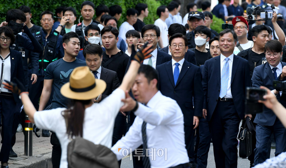 직권남용과 공직선거법 위반 혐의 등으로 기소된 이재명 경기지사가 16일 경기 성남시 수정구 수원지방법원 성남지원에서 열린 1심 선고 공판에서 무죄를 선고 받은 뒤 나서고 있다. 신태현 기자 holjjak@