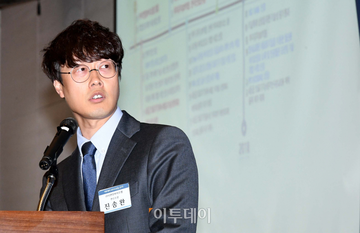 진송완 티앤알바이오팹 연구소장이 21일 서울 여의도 전경련회관 컨퍼런스센터에서 열린 ‘이투데이 바이오포럼 2019’에서 ‘3D 바이오프린팅을 이용한 세포치료제 및 인공조직의 개발’을 주제로 발표하고 있다. 이투데이 미디어가 주최한 이날 행사는 오픈 이노베이션을 통해 신약 개발의 가장 큰 어려움으로 꼽히는 자본과 시간의 제약을 극복, K-바이오의 이름을 전 세계에 알리고 있는 국내 제약·바이오 업계의 현황과 성과를 유망 기업의 사례와 함께 들여다보고자 마련됐다. 신태현 기자 holjjak@