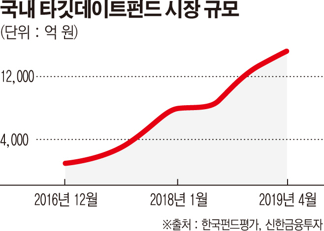 금융정보업체 에프앤가이드에 따르면 현재 국내 설정된 TDF펀드 설정액은 총 1조6292억 원이다. 2016년 3월 소개됐던 TDF는 그해 말 700억 원의 규모로 성장, 2017년 7500억 원, 지난해에는 1조 원을 넘어섰다.